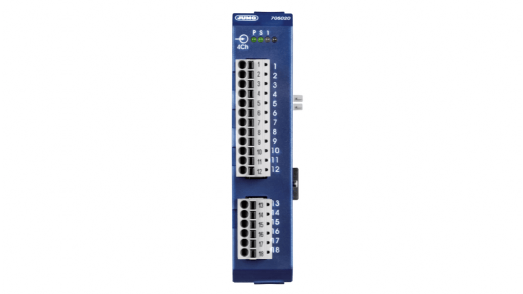 Modulo di ingresso analogico a 4 canali, isolamento galvanico, 4 ingressi analogici universali, visualizzazione stati di commutazione tramite LED, configurazione automatica post-sostituzione modulo, collegamento anteriore ingressi, cablaggio rapido tensione di esercizio e bus di sistema, ingressi elettricamente isolati. Dimensioni 0,88 x 4,07 x 3,99 poll. Compatibile con variTRON e Systembus.