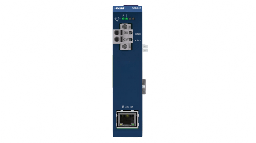 Modulo WLAN Jumo per variTRON, Systembus, compatibile con unità centrale variTRON 300 a partire dalla versione di sistema 6, isolamento galvanico del bus di sistema, alimentazione della tensione d'esercizio, cablaggio rapido, dimensioni 0,88 x 3,97 x 0,9409 poll. Modulo a 1 porta per collegamento di moduli di ingresso e uscita, supporta moduli decentralizzati.