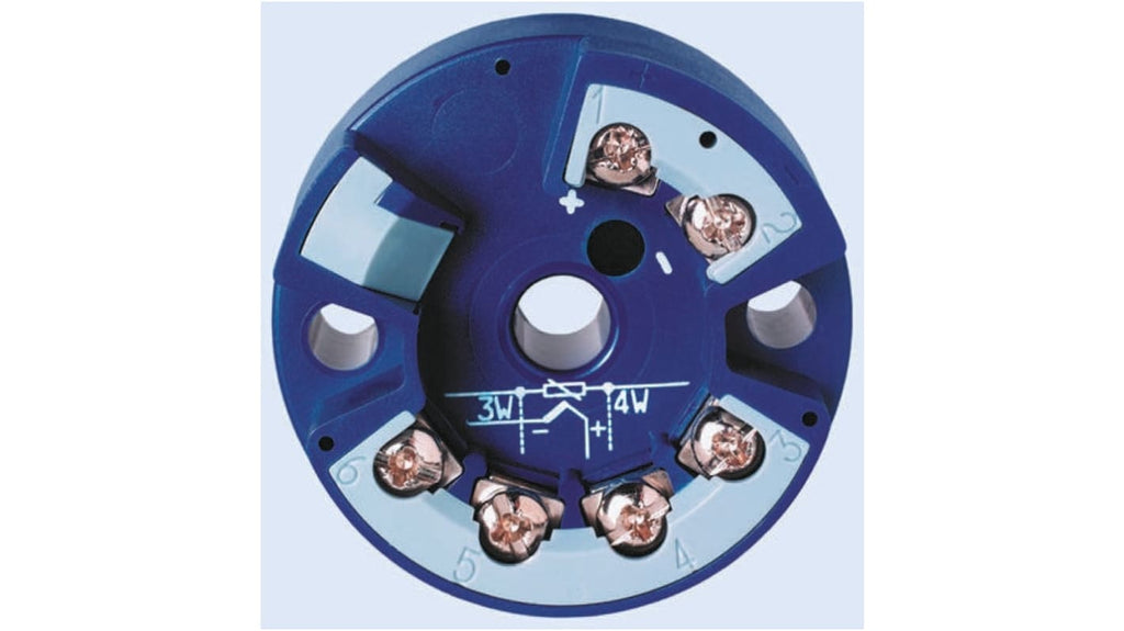 Trasmettitore di temperatura Jumo dTrans T01, ingresso PT100, alimentazione 8-30 V cc, programmabile a due fili, per termoresistenze e termocoppie, installazione con testa terminale forma B secondo DIN 43729, linearizzazione personalizzata, configurazione tramite Windows Setup T01, rilevamento rottura e cortocircuito, certificato ATEX, diametro 44 mm, profondità 21 mm, temperatura operativa da -40 a +85 gradi.