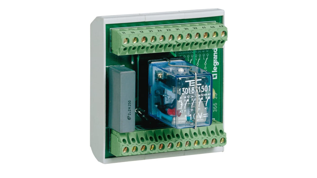 Modulo di segnalazione e centralizzazione guasti Legrand, 4 contatti di commutazione, montaggio su guida DIN, 9 ingressi, tensione di funzionamento 24 V c.a. o 48 V c.c. Codice costruttore 0 366 35.