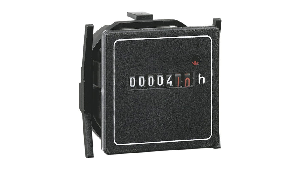 Contatore orario analogico Legrand per la misurazione delle ore di funzionamento di apparecchiature elettriche, tensione di alimentazione 48 V c.a., frequenza massima 50Hz, display analogico con 7 cifre, classe di protezione IP40, funzionamento con motore sincrono, installazione su porta armadietto, modalità di conteggio ore, senza reset. Codice costruttore 0 495 58.