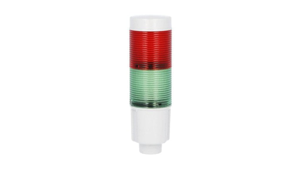 Torretta di segnalazione Lovato, 24 V c.c., LED, 2 elementi, lenti Verde e Rosso, contenitore in policarbonato, grado di protezione IP54, montaggio integrato, luce costante, modulo di luce acustica pulsata o continua, morsetto a vite.