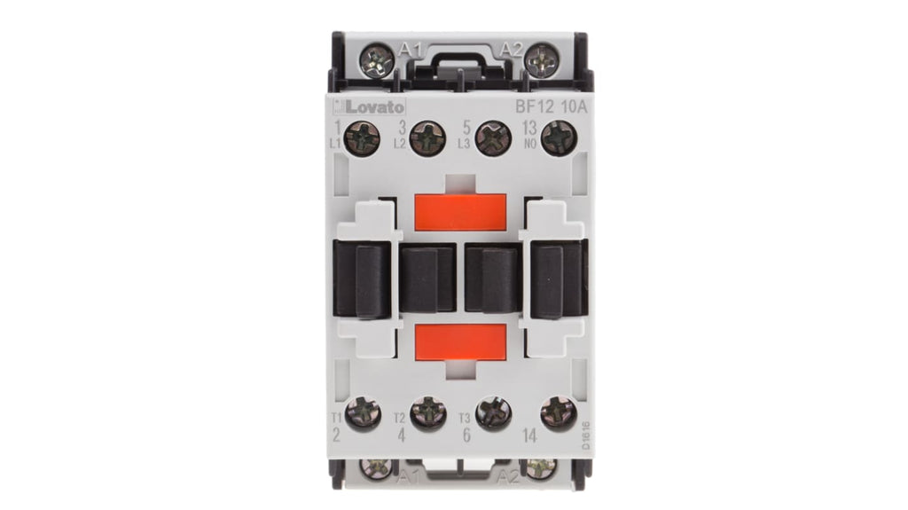 Contattore Lovato, serie BF, 3 poli, 3 NA, 12 A, 5,5 kW, bobina 400 V c.a., montaggio su guida DIN 35 mm, contatti ausiliari altamente conduttivi, protezione IP20, coperchio anteriore per collegamenti sicuri, temperatura operativa da -50 a +70 gradi Celsius, dimensioni 45 mm x 81 mm x 80,7 mm.