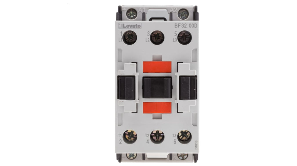 Contattore Lovato, serie BF, 3 poli, 3 NA, 32 A, 15 kW, bobina 24 V c.c., tensione nominale contatto 440 V c.a., montaggio su guida DIN 35 mm, protezione IP20, contatti ausiliari altamente conduttivi, dimensioni 45 mm x 90 mm x 90 mm, temperatura operativa da -50°C a +70°C, tipo terminale a vite.