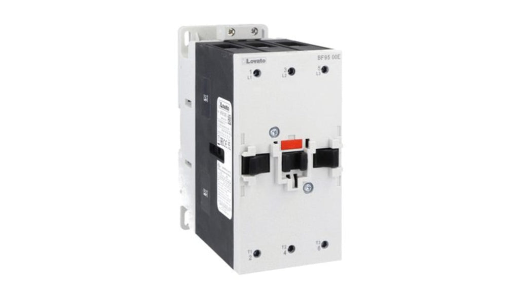 Contattore tripolare Lovato, serie BF95, con capacità di creazione e interruzione, fusibile di protezione, tensione bobina 110 V c.a./c.c., numero di poli 3, tensione nominale contatto 690 V, corrente nominale contatto 95 A, potenza nominale 90 kW. Progettato per applicazioni multiple, offre lunga durata meccanica ed elettrica, protezione contro i cortocircuiti. Codice costruttore BF9500E110.