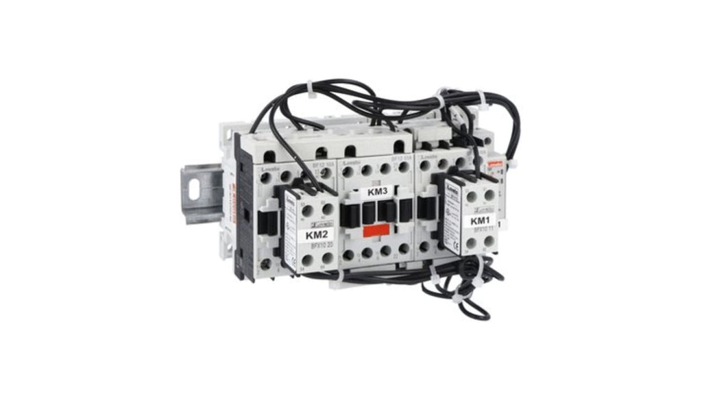 Avviatore stella-triangolo Lovato, 3 fasi, potenza nominale 11 kW, tensione 440 V, corrente massima 22 A, conforme a IEC e EN 60947, telaio aperto, supporta bobina c.a., tempo di avvio fino a 12 secondi, massimo 30 operazioni all'ora, dotato di contatti ausiliari BFX1020 e BFX1011, peso 1700 g. Codice costruttore BFA01270400.