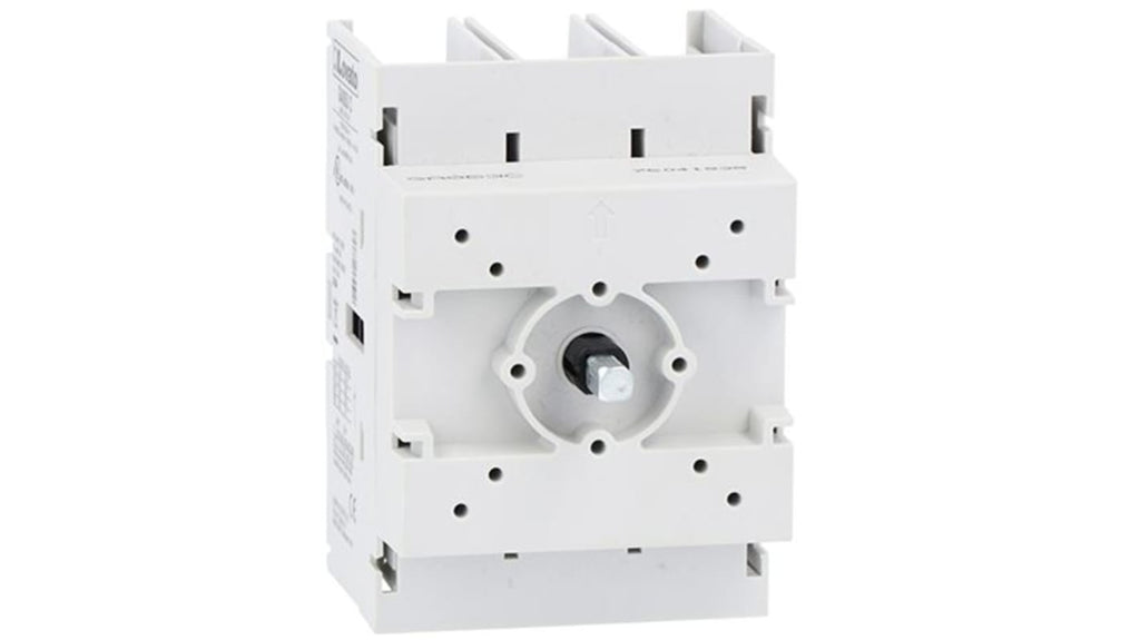Sezionatore con interruttore Lovato, corrente massima 100A, 3 poli, versione integrata con maniglia di azionamento diretto, serie GA1. Certificazioni CCC ed EAC.