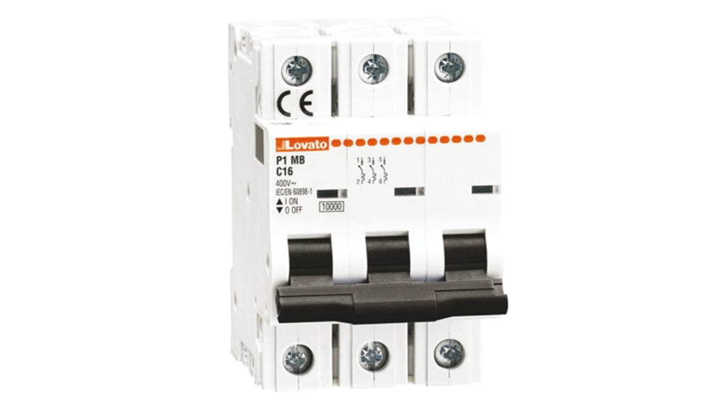 Interruttore magnetotermico Lovato 3 poli, 4 A, caratteristica di intervento Tipo B, tensione nominale 230/400 V c.a., capacità di rottura 10 kA, tensione di isolamento 440 V, montaggio su guida DIN, dimensioni 86.5 mm x 54 mm x 80 mm, serie P1MB. Disponibili blocchi aggiuntivi.