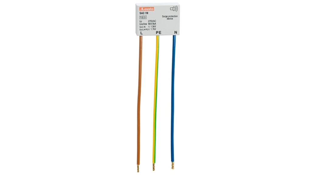 Dispositivo di protezione contro le sovratensioni tipo 3, 1 fase, corrente massima di sovraccarico 3kA, serie SA31, gamma SA4, fissaggio parallelo su connettore femmina, temperatura d'esercizio da -40 a 85 gradi Celsius, dotato di segnalazione acustica. Marchio Lovato.