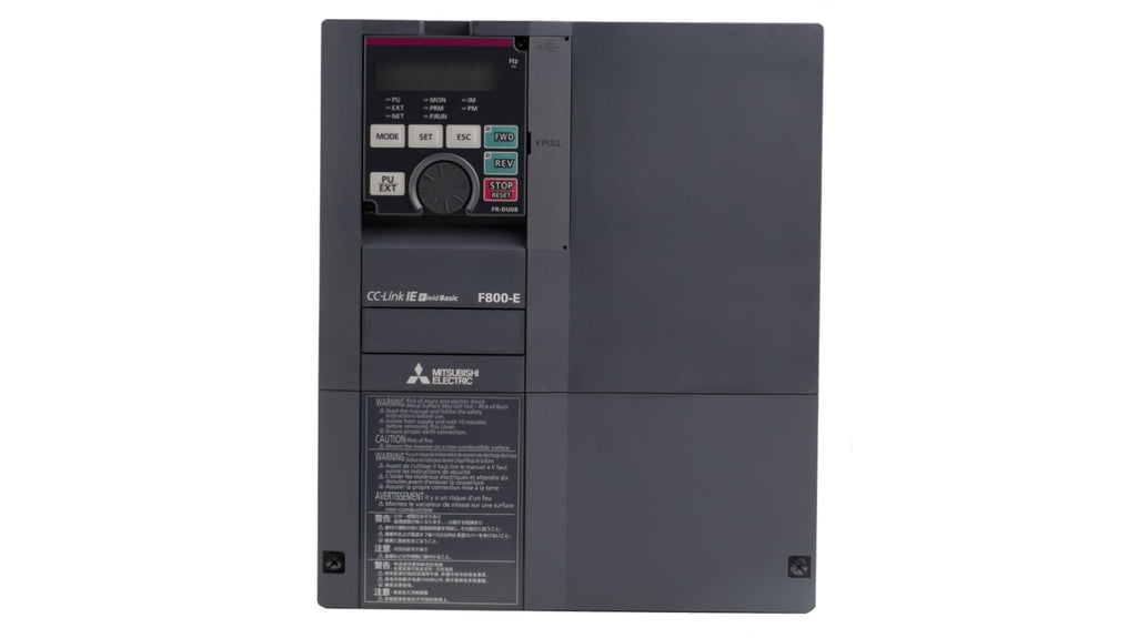 Inverter Mitsubishi Electric, 11 kW, 400 V c.a., 3 fasi, 50/60Hz. Potenza nominale 11 kW, corrente nominale 25 A, grado di protezione IP20, montaggio a parete. Controllo PID, comunicazione BACnet, display a LED a 5 cifre, filtro EMC incluso. Temperatura operativa da -10 a 50 gradi Celsius, rilevamento guasti meccanici, porta USB per configurazione. Dimensioni 260 mm x 220 mm x 170 mm.