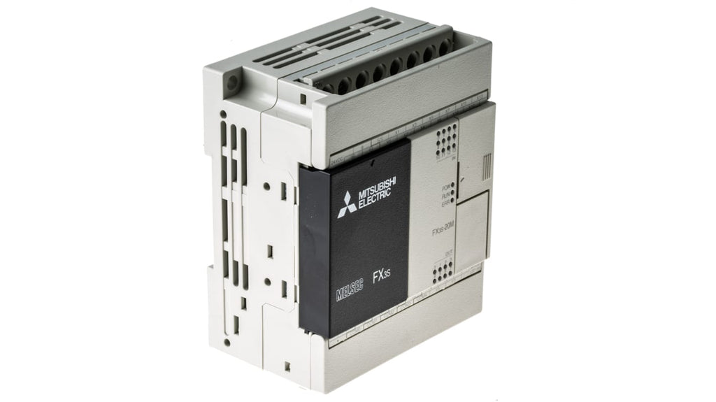 CPU PLC Mitsubishi Electric, modello FX3S-20MR/DS, 12 ingressi digitali (sink/source 24 V c.c.), 8 uscite relè, 20 I/O, alimentazione 24 V c.c., comunicazione RS-232C/RS-422/USB, Ethernet, Modbus, memoria EEPROM 16000 operazioni, capacità programma 4000 passi, dimensioni 75 x 90 x 49 mm, temperatura operativa 0-55 °C, montaggio su guida DIN, standard cUL, CE, EMC, UL.