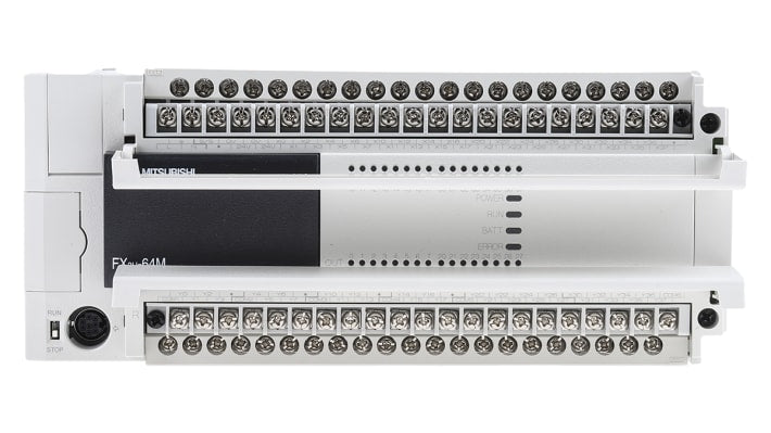 Modulo logico per guida DIN Mitsubishi Electric, 32 ingressi, 32 uscite relè, corrente di uscita 8 A, tensione di alimentazione 100-240 V c.a., temperatura operativa 0-50 °C, compatibile con moduli di espansione FX2N e FX3U, interfaccia di programmazione tramite computer e HMI, dimensioni 220 x 90 x 86 mm, capacità programma 64000 passi, protezione accesso tramite password, certificazione CE.