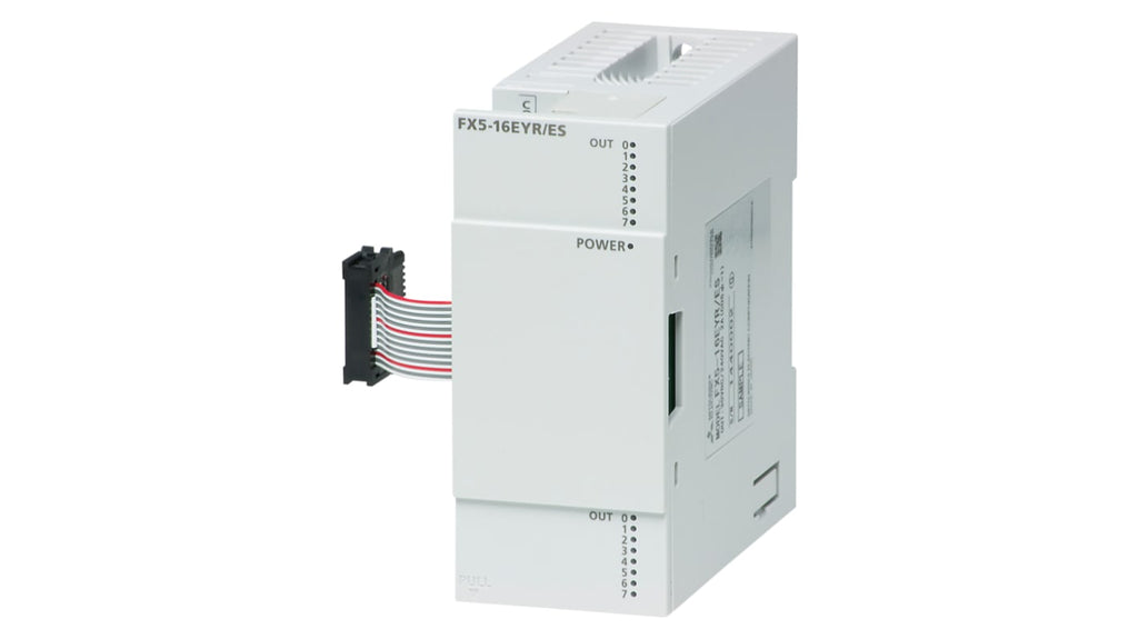Modulo I/O PLC per FX5U e FX5UC, serie SNAP, versione non alimentata, alimentazione tramite modulo CPU, 16 uscite, tipo uscita relè e transistor, visualizzazione stato tramite LED, montaggio a pannello, dimensioni 40 x 90 x 83 mm, tensione di alimentazione 5 V c.c. e 24 V c.c.