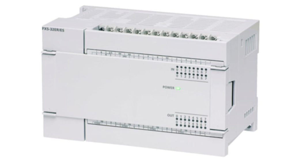Modulo di distribuzione alimentazione per MELSEC iQ-F serie PLC, alimentazione c.c. 24 V, corrente di uscita 1,6 A, 16 ingressi e 16 uscite transistor, montaggio su guida DIN, dimensioni 150 x 90 x 83 mm, visualizzazione stato tramite LED, alimentatore esterno da 100 a 240 V ca, applicazione in rete industriale. Codice costruttore FX5-32ET/DSS, marchio Mitsubishi Electric.