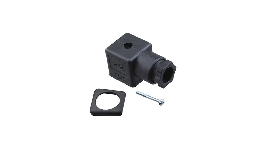 Connettore solenoide Molex DIN 43650 A, 2 poli più terminale di terra, tensione nominale 250 V c.a. e 300 V c.c., corrente nominale 16 A, filettature interne PG11, guarnizione in nitrile nera, protezione IP65 e IP67, terminazione a vite, confezione sfusa, montato. Serie 121023.