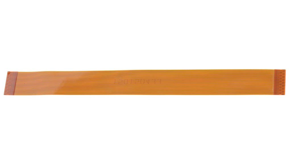 Cavo ribbon 33 vie Molex, passo 0,3 mm, senza terminazione, serie Premo-Flex. Ponticelli in poliimmide incisi, spessore 0,12 mm, resistenza a flessione fino a 900.000 cicli, temperatura operativa da -40 a +105 gradi Celsius. Circuiti in rame inciso, tensione nominale 50 V c.a./c.c., lunghezza 100 mm, larghezza 0,30 mm. Contatti sullo stesso lato.