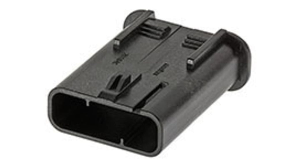 Connettore di potenza compatto maschio 3P, montaggio su cavo, terminazione crimpare, corrente nominale 40A, tensione nominale 1 kV c.a./c.c., contatti in lega di rame placcati oro, custodia in PEI, temperatura operativa da -40 a +150 gradi Celsius, design leggero e compatto, compatibile con fili fino a 8 e 18 AWG, serie 201840, marchio Molex.