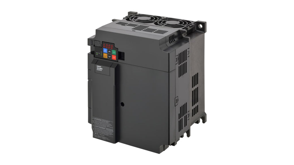 Avviatore a velocità variabile Omron, potenza nominale 0,2 a 18,5 kW, tensione di alimentazione 200 V CA, 3 fasi, corrente nominale 69 A, controllo di coppia per IM in OLV/CLV, PM in CLV, encoder incorporato, ingresso contatore di impulsi, supporto Modbus RS-485, porta di programmazione USB, PCB rivestito per resistenza alla polvere e umidità, certificato CE, UKCA, cULus, KC, reclamo RoHS e RCM.