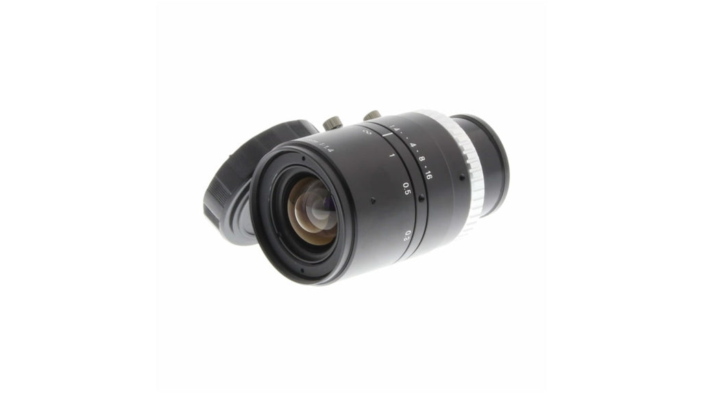 Obiettivo per sistemi di ispezione visiva. Alta risoluzione, bassa distorsione, attacco tipo C, lunghezza focale 75 mm, dimensioni del sensore di immagine 1/3 pollice, serie SV-H. Progettato per applicazioni di rilevamento difetti basate su intelligenza artificiale.