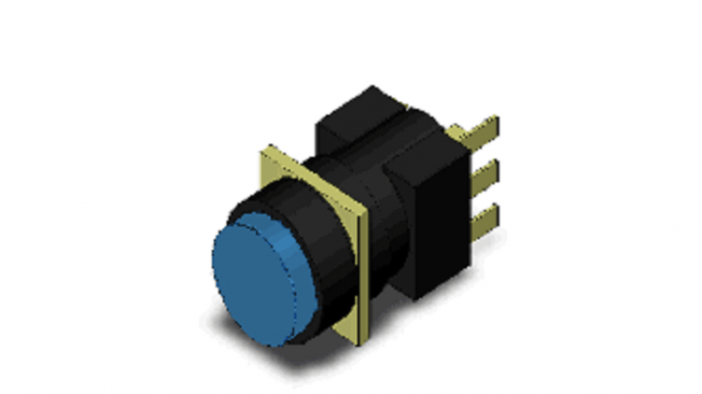 Interruttore a pulsante Omron, momentaneo, SPDT, montaggio a pannello, non illuminato, grado di protezione IP65, diametro 16 mm, tensione nominale 30V cc, colore blu. Configurazione contatto SPDT, serie A16.