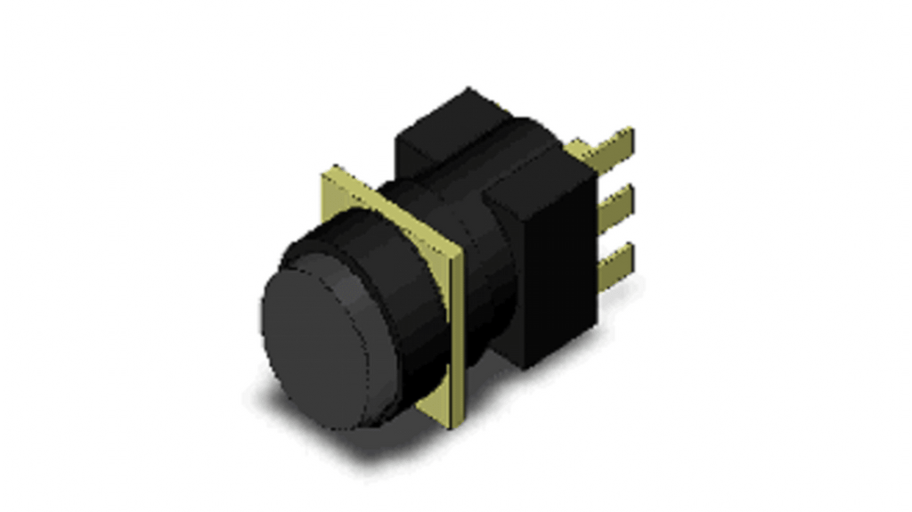 Interruttore a pulsante Omron, momentaneo, SPDT, montaggio a pannello, non illuminato, grado di protezione IP65, diametro 16 mm, tensione nominale 250V ca, colore nero.