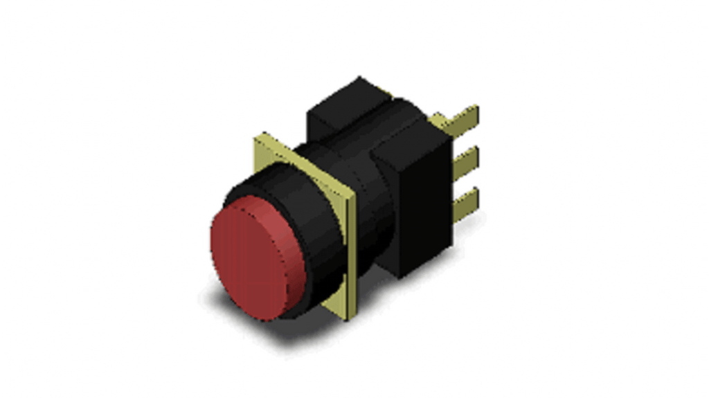 Interruttore a pulsante Omron, momentaneo, SPDT, non illuminato, grado di protezione IP65, montaggio a pannello, diametro 16 mm, tensione nominale 30V cc, colore rosso. Configurazione contatto SPDT, serie A16.