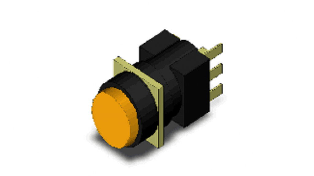 Interruttore a pulsante Omron, momentaneo, SPDT, non illuminato, montaggio a pannello, grado di protezione IP65, diametro 16 mm, tensione nominale 30V cc, colore giallo. Configurazione contatto SPDT, serie A16.