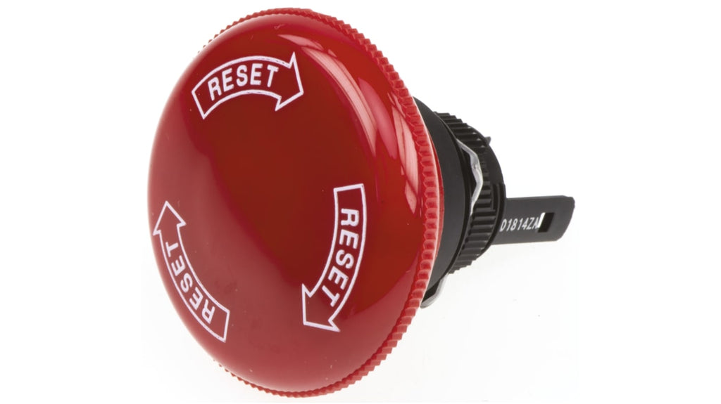 Pulsante di arresto di emergenza Omron, codice A165EM02, gruppo interruttore gamma A16, struttura miniaturizzata, diametro foratura 16 mm, tensione nominale 230 V c.a., tenuta IP65, conforme a EN 60947-5-1, configurazione contatto DPST, unità interruttore scollegabile, assemblato di facile innesto, disposizione terminali per facile cablaggio, operazioni a ritenuta.