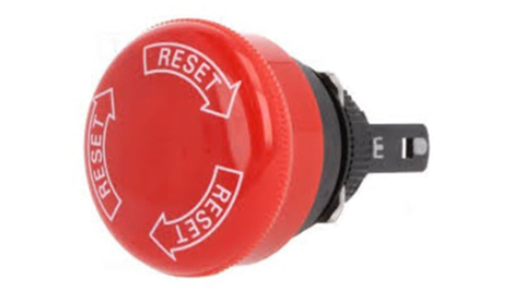 Pulsante di arresto di emergenza Omron A165E, montaggio a pannello, diametro foro 16 mm, attuazione a pulsante, rilascio a rotazione, meccanismo di apertura diretta con separazione minima del contatto di 3 mm, protezione IP65, colore rosso, forma rotonda, materiale plastica, profondità di montaggio inferiore a 28,5 mm, conforme a EN418 e EN60947-5-1, contatti ausiliari NA.
