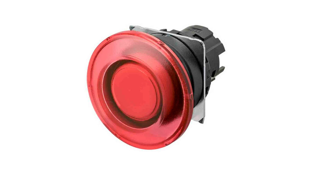 Interruttore a pulsante Omron, momentaneo, illuminato, colore rosso trasparente, protezione IP66, codice produttore A22NZ-BMM-TRA, realizzato in plastica, compatibile con modelli della gamma A22N.