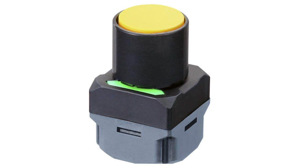 Pulsante di chiamata wireless Omron, IP65, senza batteria, 8 pulsanti assegnabili a un ricevitore, ciascun ricevitore con 8 uscite a transistor, alimentazione generata automaticamente, comunicazione confermata da LED colorato, banda di frequenza 922,5MHz, antenna magnetica opzionale. Colore giallo, tipo rotondo, diametro 40mm, materiale policarbonato, tensione massima 24V, temperatura operativa da -10 a +55°C. Codice costruttore A2W-TB-WC1 EU2YB.