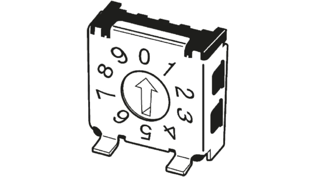 Interruttore DIP rotante miniaturizzato, 16 posizioni, montaggio superficiale, dimensioni 7,2 x 7,2 mm, corrente nominale 25 mA a 24 V cc, contatti placcati oro per alta affidabilità, distanza fra i pin 2,54 mm, ingombro 5,08 mm, durata meccanica 20000 operazioni, temperatura operativa da -30 a +80 gradi Celsius, rigidità dielettrica 250 V ca. Codice costruttore A6KSV-164RF, marchio Omron.