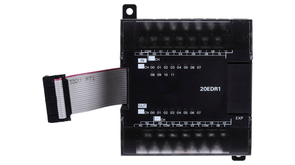 Modulo di espansione PLC per Modulo PLC, Omron CP1W-20EDR1, 12 ingressi, 8 uscite a relè, tensione 250 V c.a. e 24 V c.c., capacità di commutazione massima 2 A a 250 V c.a., 4 A a 24 V c.c., durata elettrica 150000 operazioni a carico resistivo, vita meccanica 20000000 operazioni, dimensioni 90 x 86 x 50 mm.