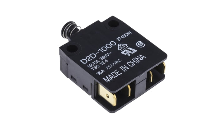 Microinterruttore porta a Stantuffo SPDT con forza di azionamento 5,88 N, meccanismo a prova di guasto, molla di ritorno doppia, contatti positivi, distanza contatti 3 mm, corrente nominale 16 A a 250 V c.a., terminale a vite, protezione IP40, materiale contatto argento, durata meccanica 10000000 operazioni, temperatura operativa -25 a +85 gradi, conforme RoHS, autorizzato UL, CSA, VDE, TUV.