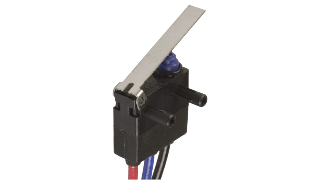 Microinterruttore sigillato ultraminiaturizzato, configurazione SPDT, corrente nominale 2 A a 12 V c.c., carico minimo 1 mA a 5 V c.c., protezione IP67, corsa extra lunga, dimensioni ridotte al 78% dei modelli convenzionali, forza di azionamento 0,5 N, temperatura operativa da -40 a +85 gradi Celsius, durata meccanica 1 milione di operazioni, terminali diritti e ad angolo retto, conforme RoHS.