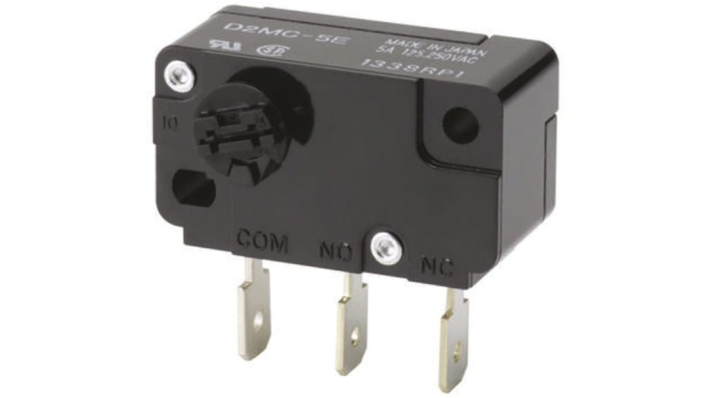 Microinterruttore Omron D2MC, SPDT, 5 A a 250 V c.a., attuatore rotativo, terminale a linguetta, protezione IP40, durata meccanica 10.000.000 operazioni, temperatura operativa da -25 a +80 gradi Celsius, contatti in lega d'argento, progettato per operazioni a bassa coppia, alta affidabilità.