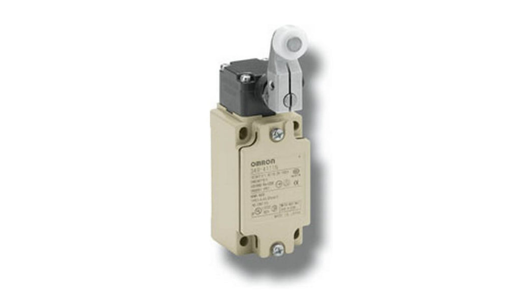 Interruttore di fine corsa Omron, leva a rullo, 1NC/1NA, custodia in metallo, contatti ad azione lenta e a scatto, apertura diretta certificata, meccanismo di regolazione leva, indicazione zona operativa, commutazione a pulsante, intervallo di temperatura operativa da -40 a 80 gradi Celsius, standard certificati UL, CSA, EN e CCC, serie D4B.