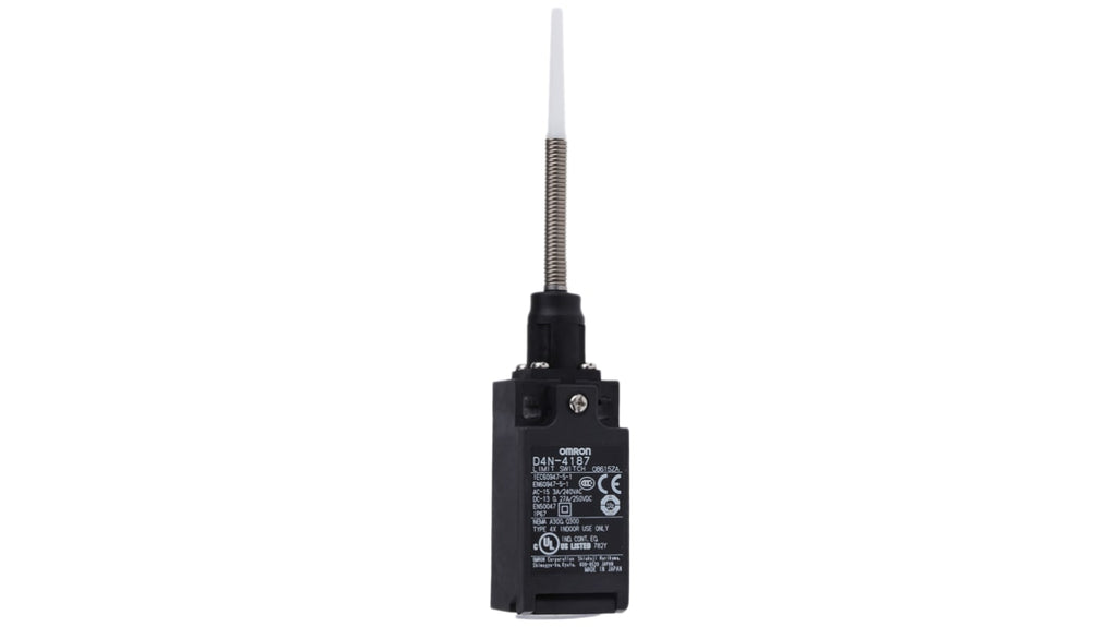 Interruttore di fine corsa di sicurezza miniaturizzato, serie D4N, alloggiamento in plastica, meccanismo di apertura diretta, due contatti incorporati, configurazione DPST, stato normale NO/NC, tipo di connessione M20, lunghezza 64 mm, larghezza 31 mm, profondità 31.5 mm, durata meccanica 15000000 cicli, conforme a EN115 e EN81-1, senza piombo, cadmio o cromo esavalente.