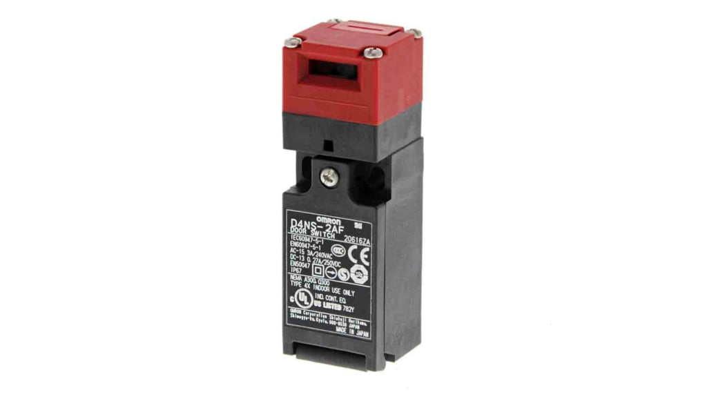 Interruttore di interblocco di sicurezza a chiave, 3NC, tensione massima 240V, corrente 10A, tipo di connessione G1/2, custodia in plastica, serie D4NS. Contatti placcati oro per elevata affidabilità, montaggio in quattro direzioni, privo di piombo, cadmio e cromo esavalente. Applicabile a carichi standard e microcarichi.