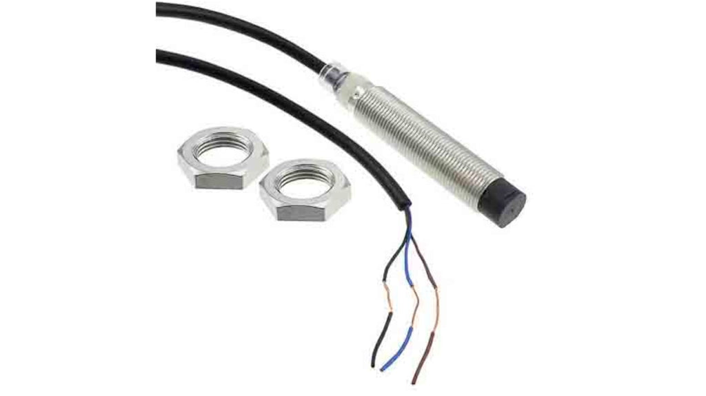 Sensore di prossimità cilindrico induttivo, M12 x 1, NPN normalmente aperto, rilevamento 8 mm, tensione di alimentazione 10-30 V c.c., cavo precablato di 2 m, grado di protezione IP67, temperatura d'esercizio da -25 a 70 gradi Celsius, corpo in nichel-ottone, lunghezza 70 mm, indicatore visibile 360 gradi. Modello E2B-M12LN08-WP-C1 2M, marchio Omron.