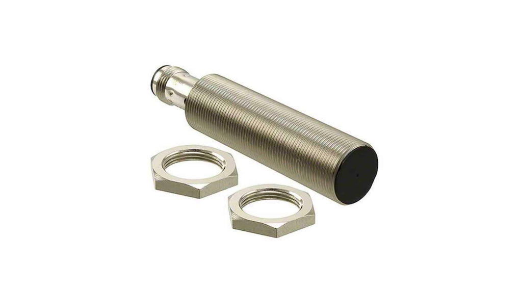 Sensore di prossimità cilindrico Omron, tecnologia induttiva, NPN, M18 x 1, distanza di rilevamento 8 mm, connettore M12, grado di protezione IP67, lunghezza 81 mm, resistente all'olio nebulizzato, indicatore a 360 gradi. Modello E2B-M18LS08-M1-C1.
