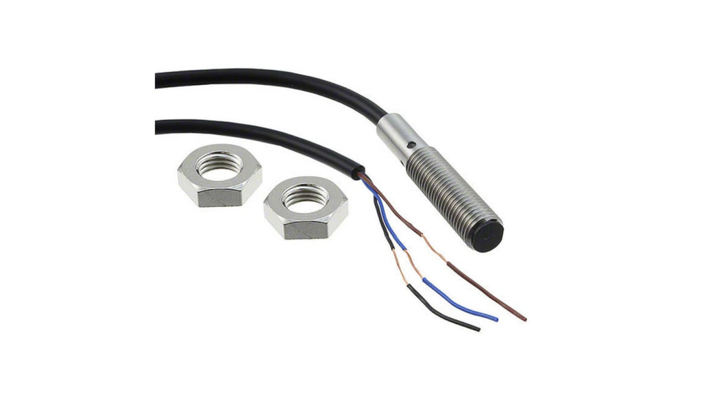 Sensore di prossimità cilindrico induttivo Omron, PNP normalmente aperto, M8 x 1, rilevamento 2 mm, tensione di alimentazione 10-30 V c.c., grado di protezione IP67, temperatura d'esercizio da -25 a 70 gradi Celsius, corpo in acciaio inox, sensore precablato con cavo di 2 m, lunghezza 64 mm, indicatore visibile 360 gradi.