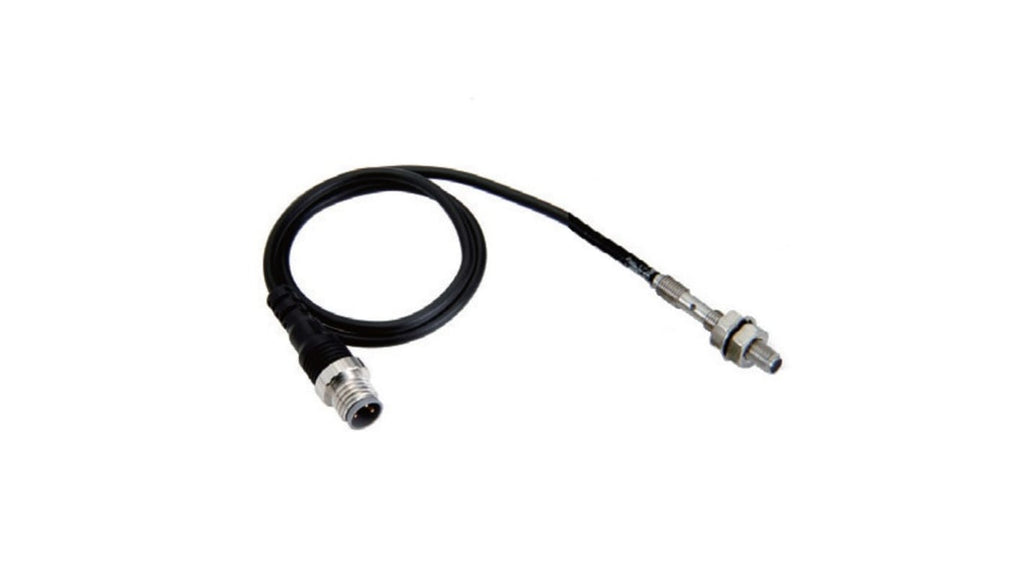 Sensore di prossimità induttivo cilindrico Omron, uscita PNP, distanza di rilevamento 0,8 mm, tensione di alimentazione 10-30 V, grado di protezione IP67, temperatura d'esercizio da -25 a 70 gradi Celsius, dimensione filetto M4 x 0,5, lunghezza 27 mm. Modello E2E-S04SR8-CJ-B1 0.3M.