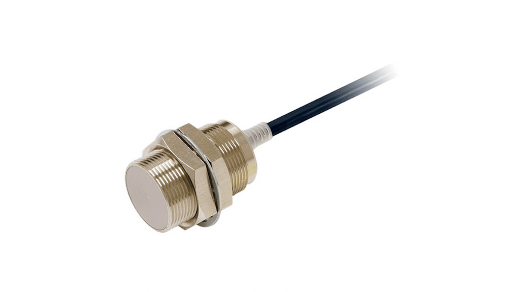 Sensore di prossimità induttivo cilindrico Omron, PNP, M12 x 1, gamma di rilevamento 4 mm, corpo in ottone nichelato, cavo di 5 metri, grado di protezione IP67/IP67G/IP69K, tecnologia IO-Link COM3 (230,4 kbps), rilevamento stabile, sostituzione rapida con "e-jig", cavi resistenti all'olio.