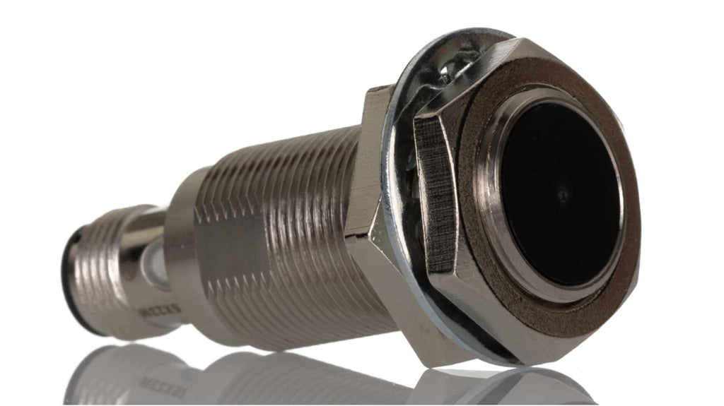 Sensore di prossimità cilindrico induttivo, PNP, M18 x 1, rilevamento 8 mm, tensione di alimentazione 10-30 V CC, corrente di commutazione 16 mA, connettore M12 a 4 pin, grado di protezione IP67, IP67G, IP69K, temperatura operativa da -25 a +70 gradi Celsius, custodia in ottone, schermato, protezione da inversione di polarità e sovraccarico, serie E2E-NEXT.