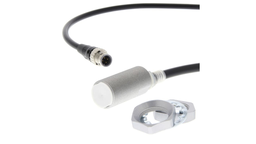 Sensore di prossimità cilindrico Omron, tecnologia induttiva, filettatura M18 x 1, uscita NPN e PNP, gamma di rilevamento 9 mm, cavo con connettore, grado di protezione IP67G, resistenza all'olio per 2 anni, LED ad alta luminosità visibile a 360 gradi, certificazione UL60947-5-2.