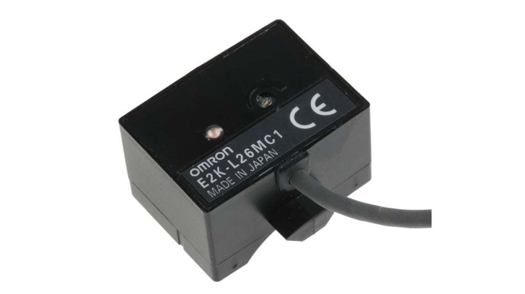 Sensore di prossimità a parallelepipedo, tecnologia capacitiva, uscita NPN, gamma di rilevamento 12 tubo da 26 mm, tensione di alimentazione 10,8 a 30 V c.c., grado di protezione IP66, materiale custodia ABS, temperatura operativa da 0 a 55 gradi Celsius, dimensioni 33 mm x 34 mm x 20 mm. Marchio Omron, codice costruttore E2K-L26MC1 2M.