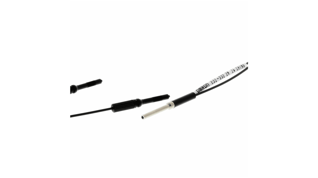 Sensore per fibre ottiche, testa in fibra R25, forma assiale cilindrica, lunghezza cavo 2 m, distanza di rilevamento 220 mm, orientamento superficie di rilevamento dall'alto, materiale nucleo plastica, grado di protezione IP67.