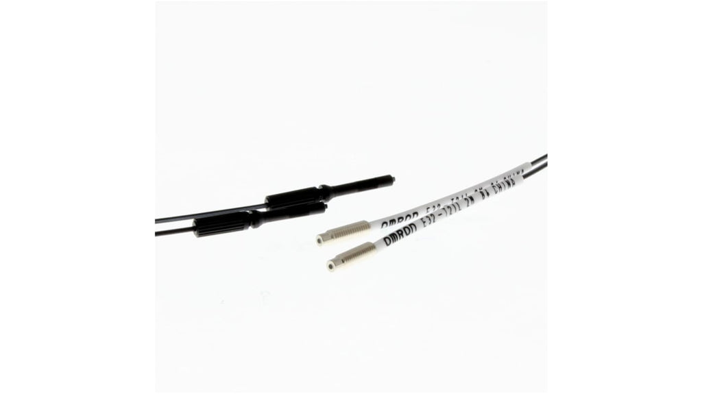 Sensore per fibre ottiche con metodo di rilevamento del fascio passante, diametro 3 mm, distanza di rilevamento 1200 mm, cavo di lunghezza 2 m, lunga durata operativa, facile configurazione e regolazione. Marchio Omron, codice costruttore E32-T21L 2M.