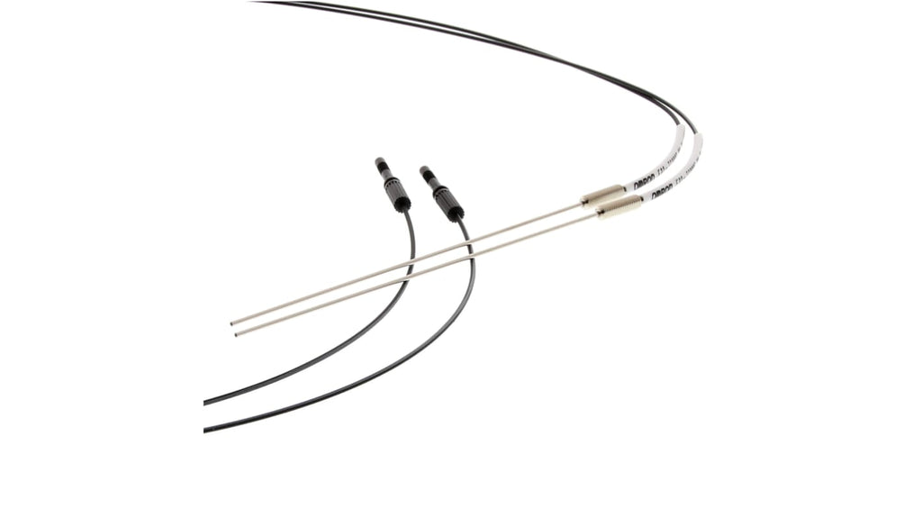 Sensore per fibre ottiche con metodo di rilevamento a fascio passante, diametro 0,9 mm, gamma di rilevamento fino a 670 mm, grado di protezione IP67. Teste in fibra miniaturizzata per alta precisione in spazi ridotti, dimensioni da diametro 500 μm a 3 mm, modelli con vista laterale e allineamento dell'asse di precisione, maniche pieghevoli per posizionamento preciso. Marchio Omron, codice costruttore E32-TC200F.